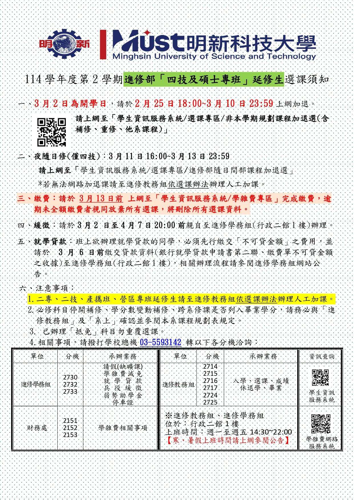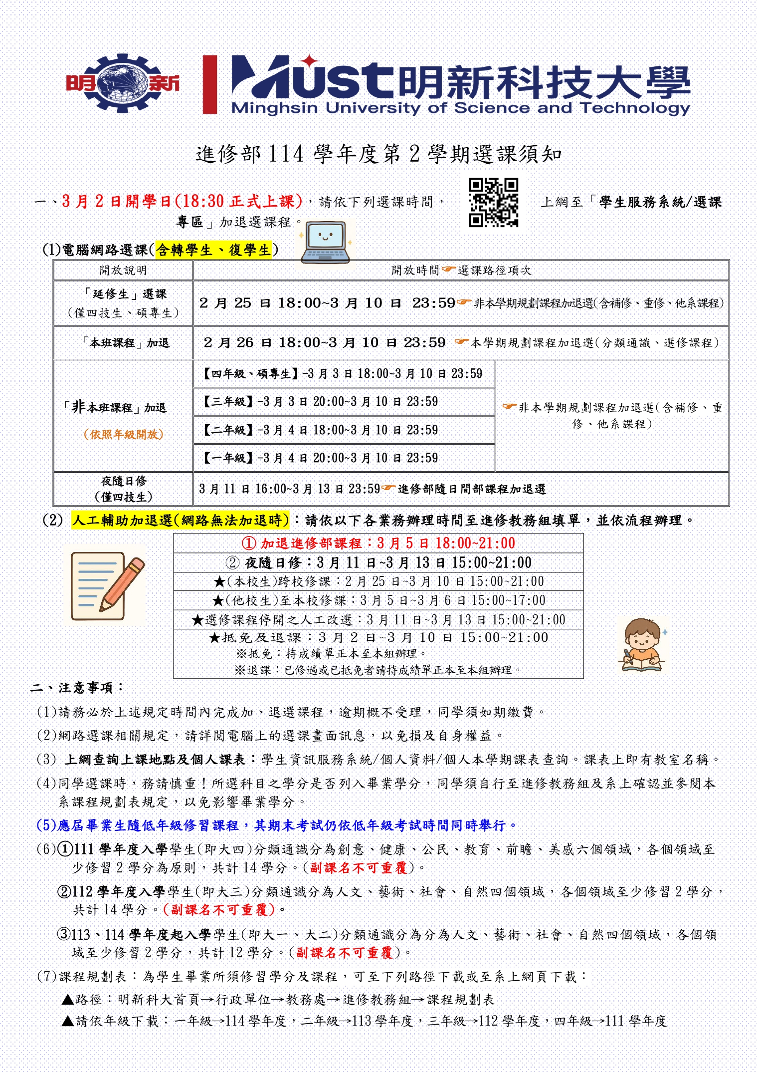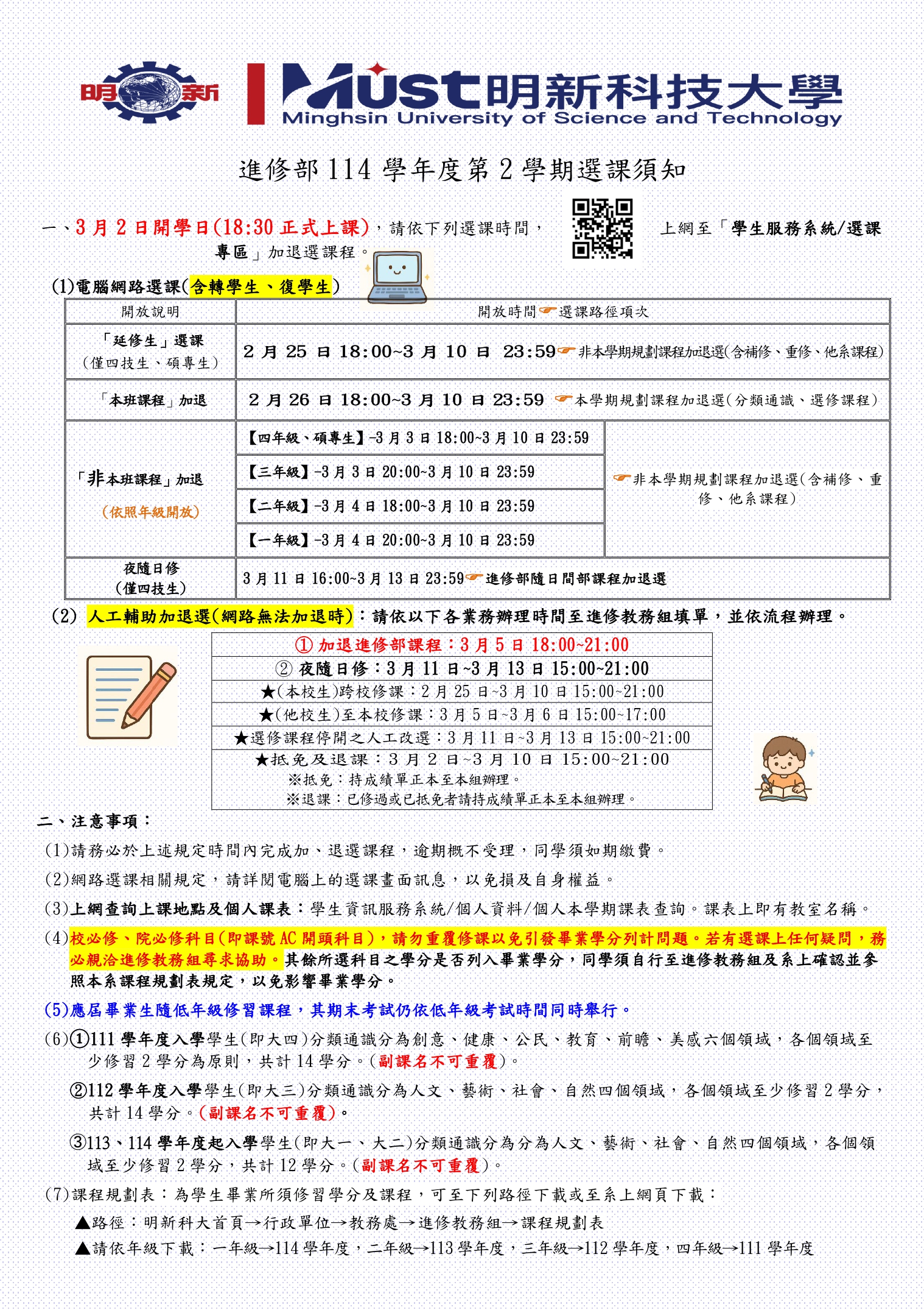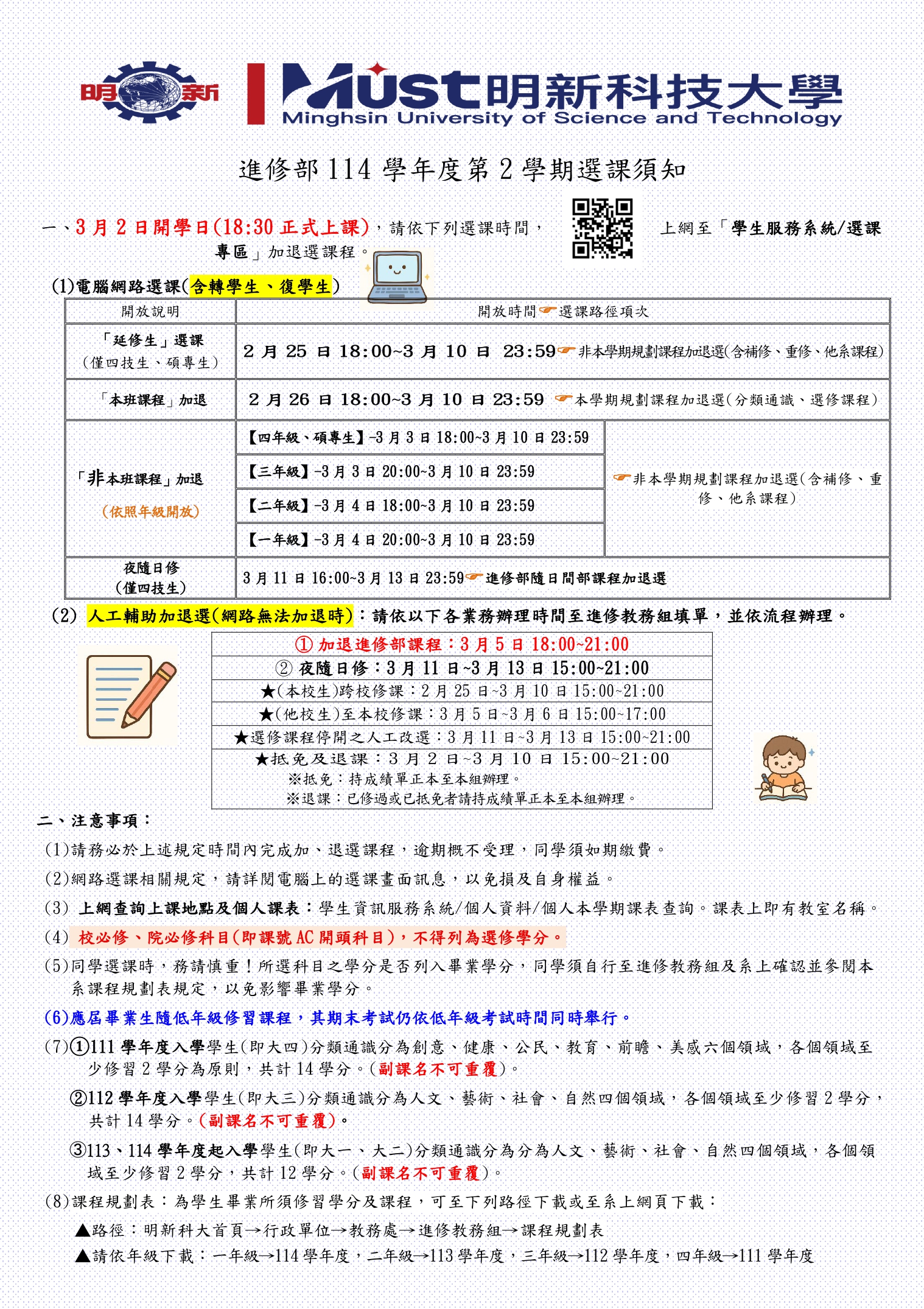 114學年度第2學期進修部選課須知-【含在校生(復學生)、多元培力、延修生】