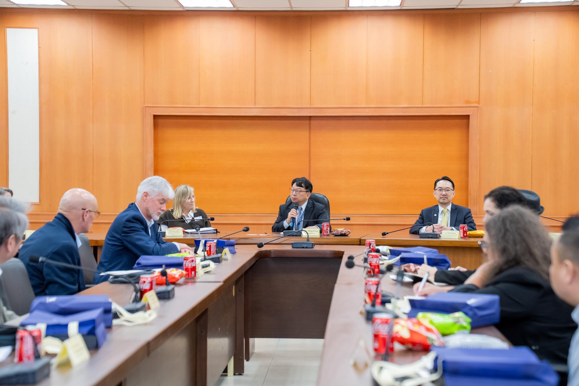 訪團此行特別實地參訪了明新科大全國首創的「半導體人才培育基地」。美方代表對基地內建置的「半導體封裝測試類產線」以及完善的半導體人才培育訓練計劃表示高度讚賞與濃厚興趣。 隨後,訪團成員包含樹城州立大學 (BSU)、愛達荷大學 (U of I)、愛達荷州立大學 (ISU)、南愛達荷學院 (CSI)、西愛達荷學院 (CWI)及北愛達荷學院 (NIC)等6所大學代表,針對台灣政府推動的「國際產業人才教育專班 (新型專班)」及政府獎學金方案進行深度討論。