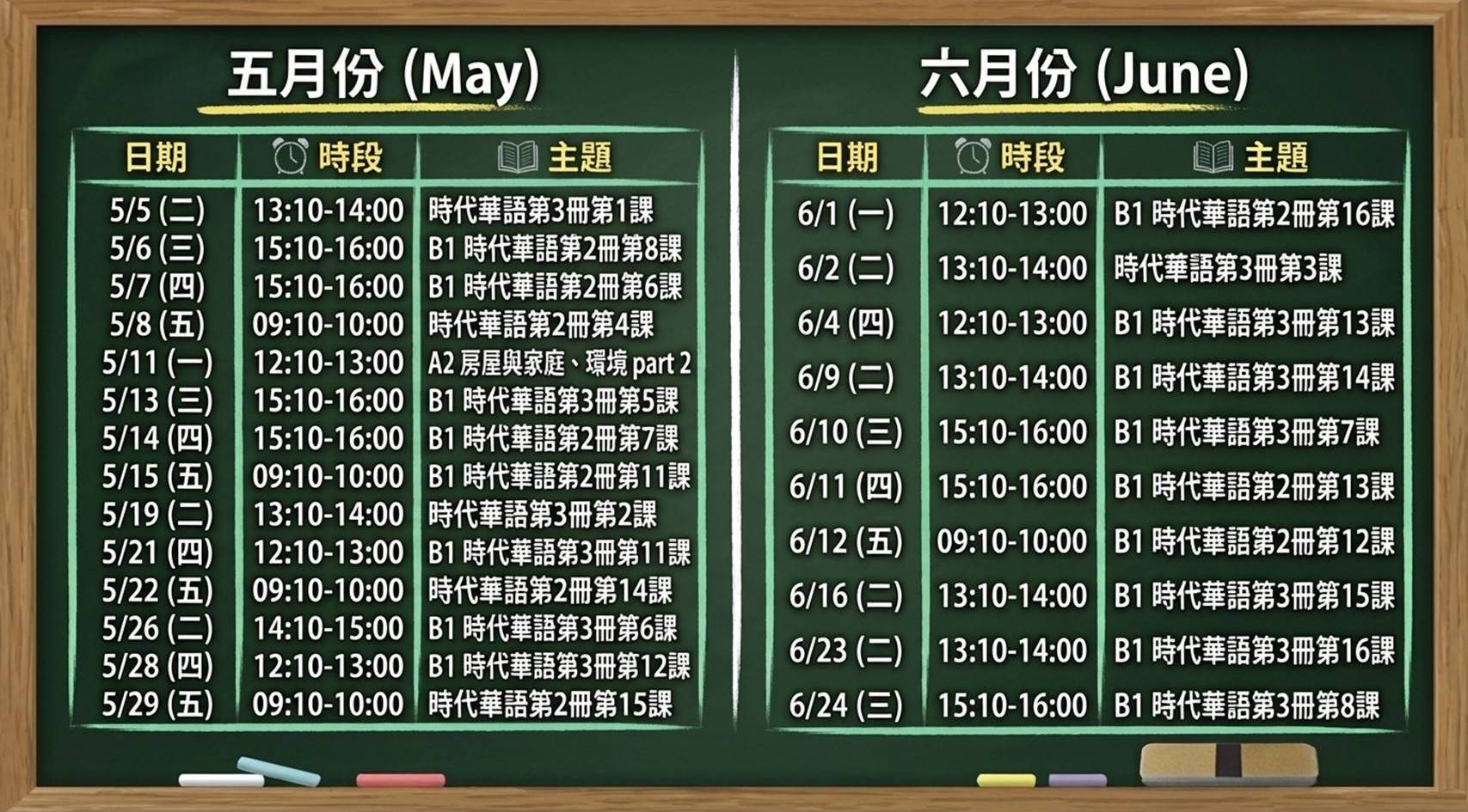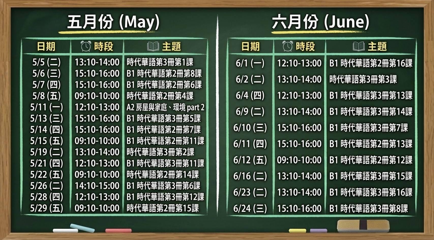 *進階強化課程:針對《時代華語》第二冊及第三冊之重點課文進行深入輔導與練習。