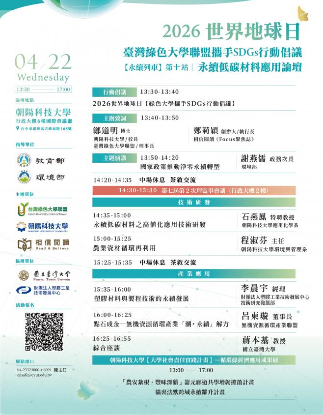 臺灣綠色大學聯盟-「2026世界地球日【綠色大學攜手SDGs行動倡議】暨淨零列車論壇」