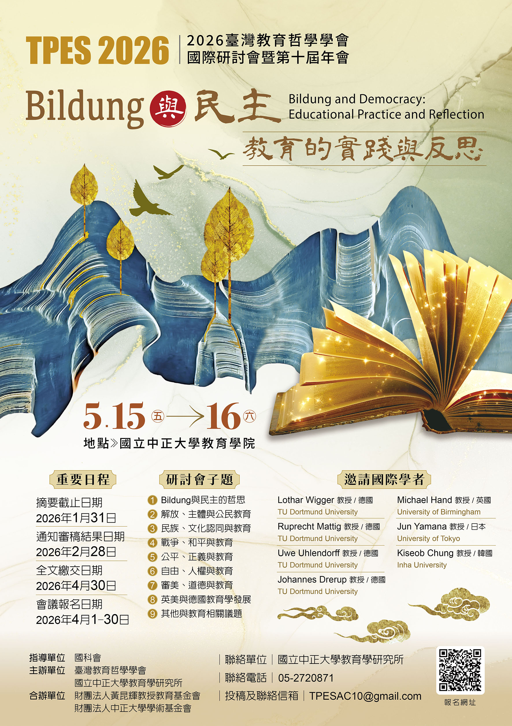 國立中正大學 「Bildung與民主:教育的實踐與反思」國際研討會暨「臺灣教育哲學學會第十屆年會」徵稿