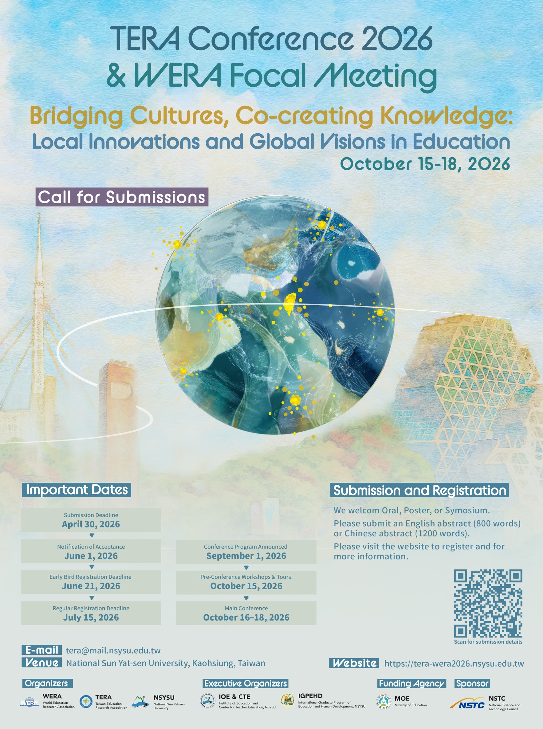 國立中山大學 函 舉辦「台灣教育研究學會暨世界教育研究學會2026國際學術研討會」(TERA Conference 2026 & WERA Focal Meeting)