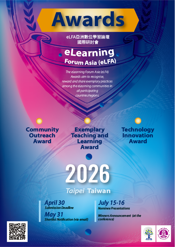 旨揭「eLearning Forum Asia 2026國際研討會」訂於2026年7月15日(星期三)至7月16日(星期四)假本校承曦樓舉辦,活動整合國際學術研討會及 eLFA Awards,以「Education Refined and Reinvented in the Age of AI」為大會主題。