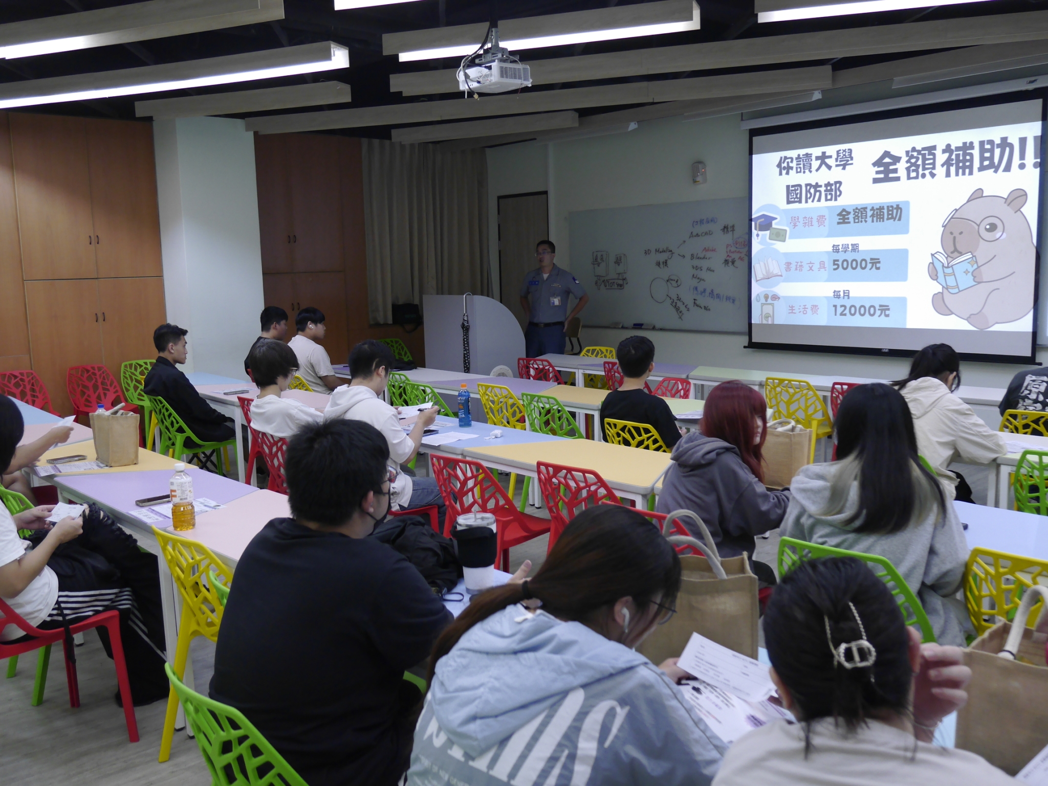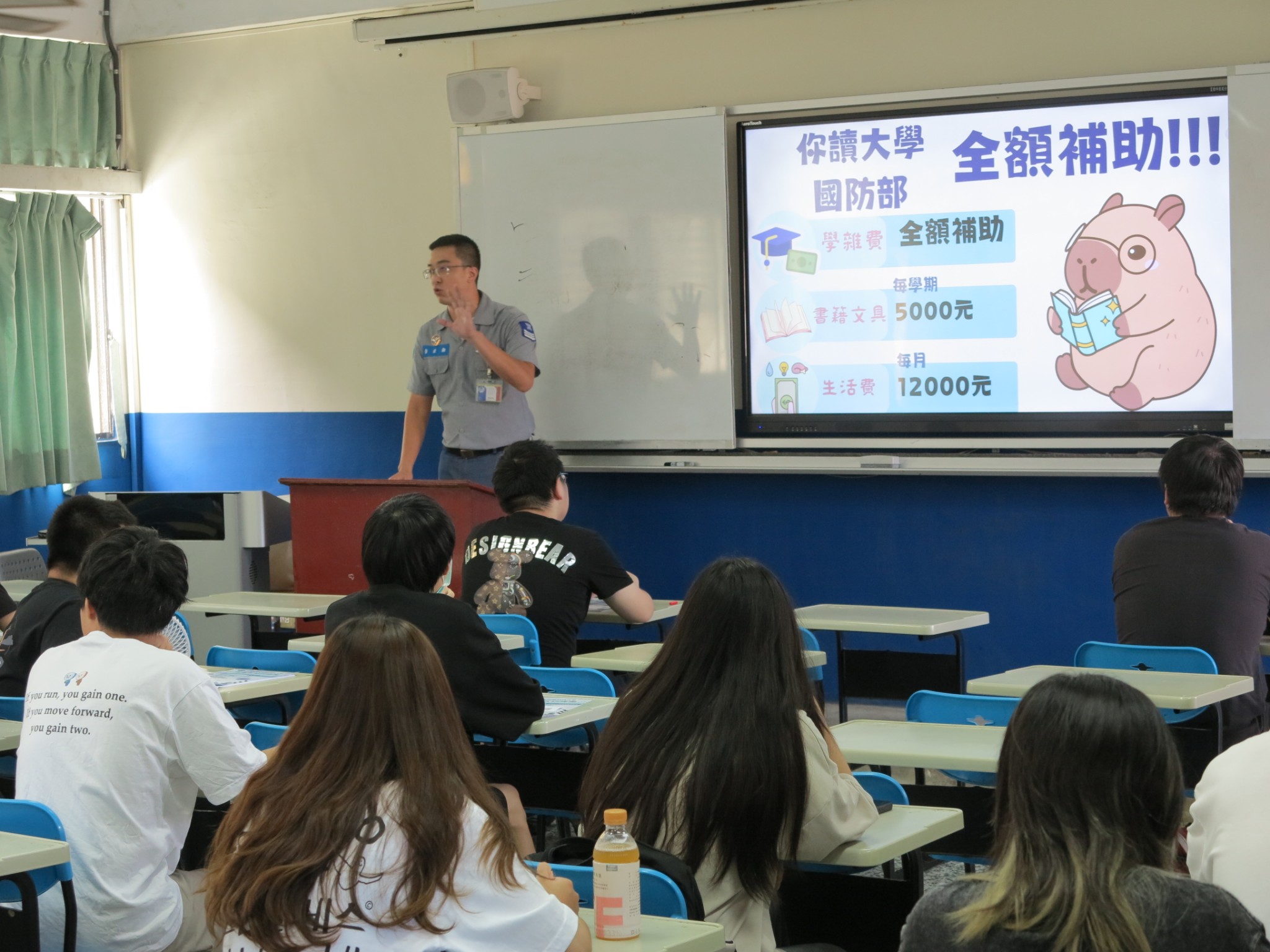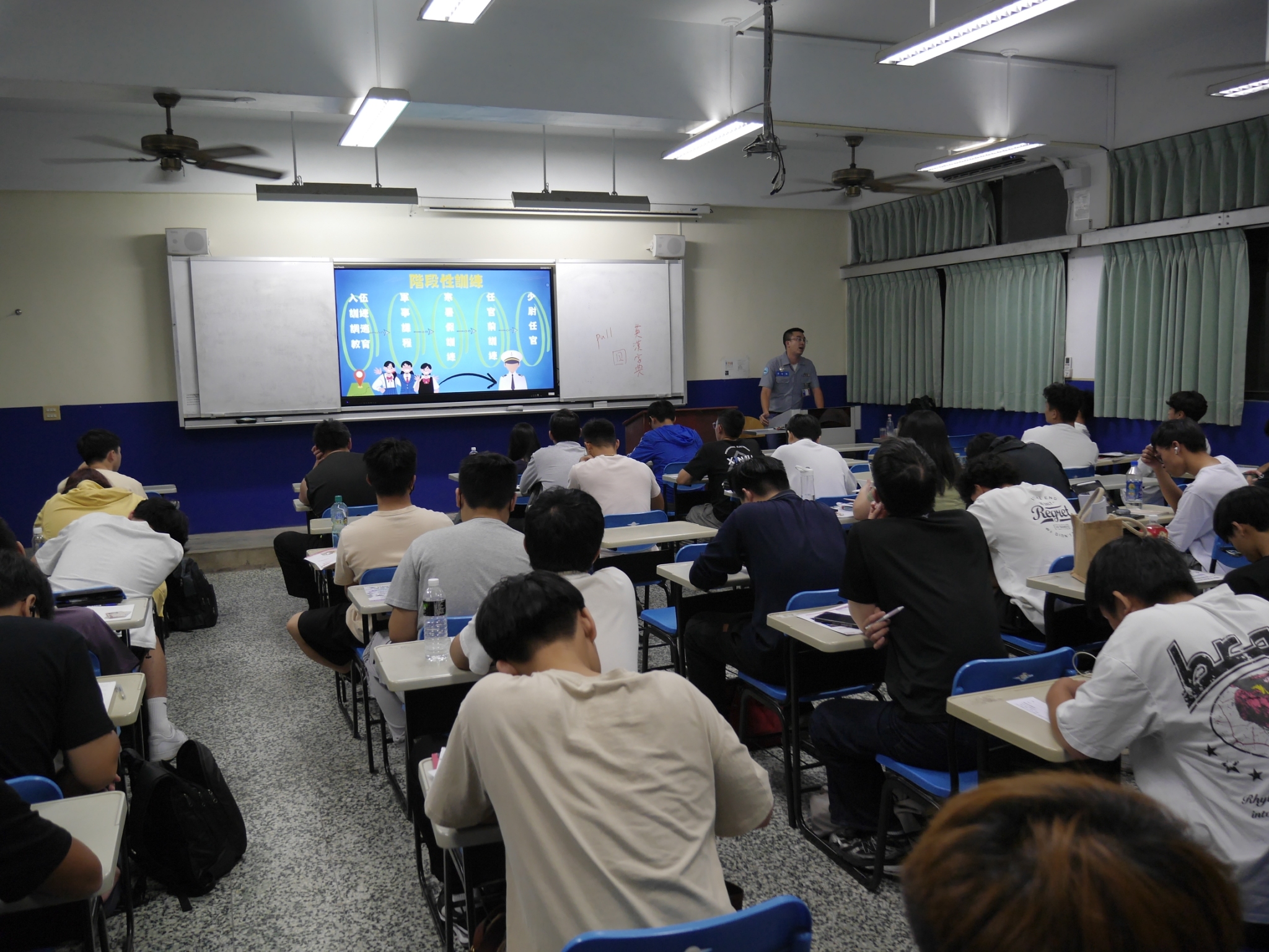 招募作業進行到第3天,多數授課老師在了解ROTC的招生相關規定後,均表示支持與鼓勵同學藉此管道,加入國軍行列,達到就學即就業的目標;在炎熱的氣候下,要完成日夜間部招生宣導,對同仁的體力的確是艱辛的考驗,但大家齊心努力達到每日計畫目標。