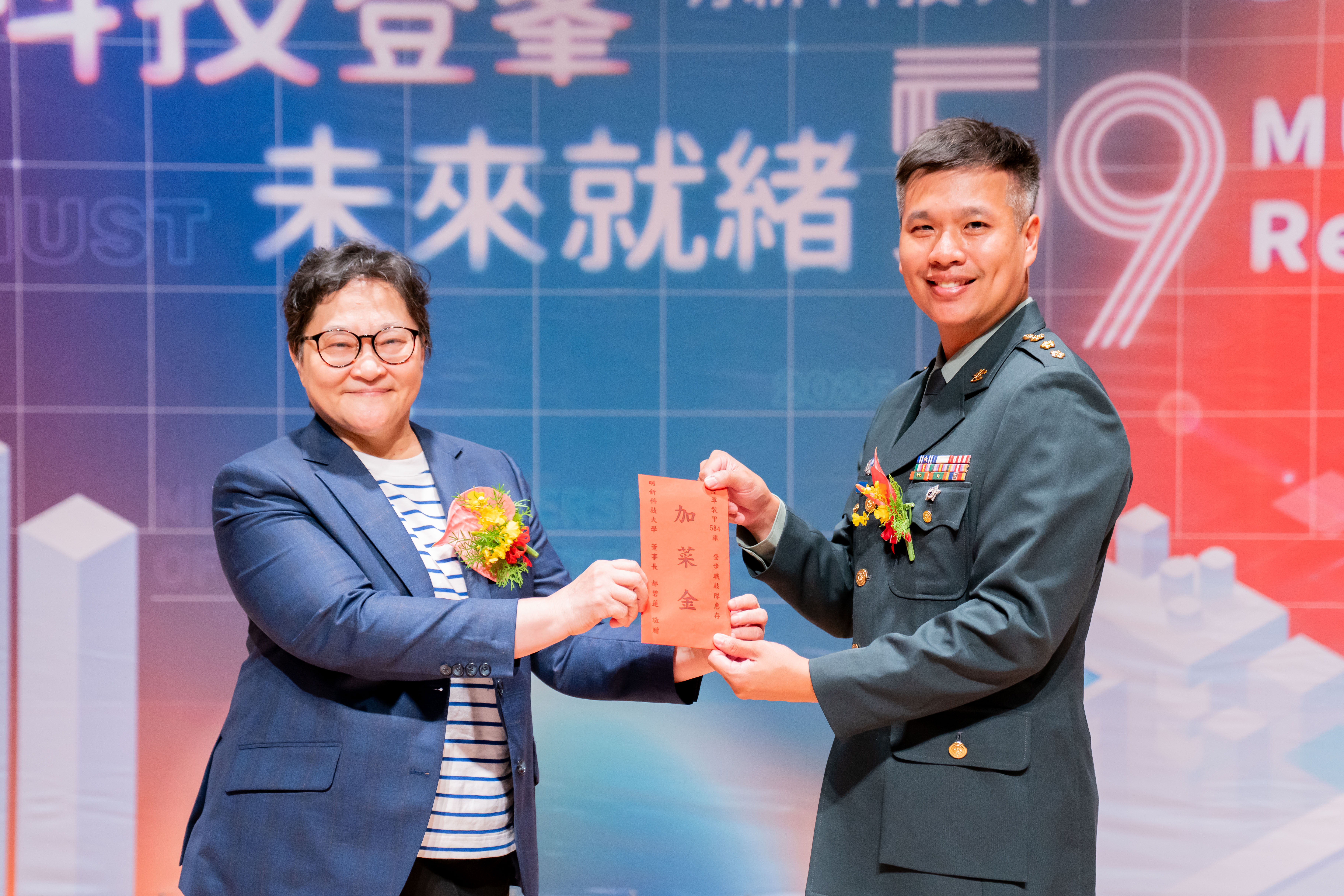 在「登步戰鼓隊」氣勢恢宏的演出後,分別由董事長郝碧蓮頒發加菜金及校長呂明峯頒發感謝狀,除感謝陸軍裝甲584旅優異的演出外,同時也表達支援花蓮光復鄉救災活動及近期籌備成軍典禮官兵的辛勞;大會中由董事長郝碧蓮親自頒發「傑出校友」予陸軍司    令部張然順上校,表彰服務軍旅的傑出表現。