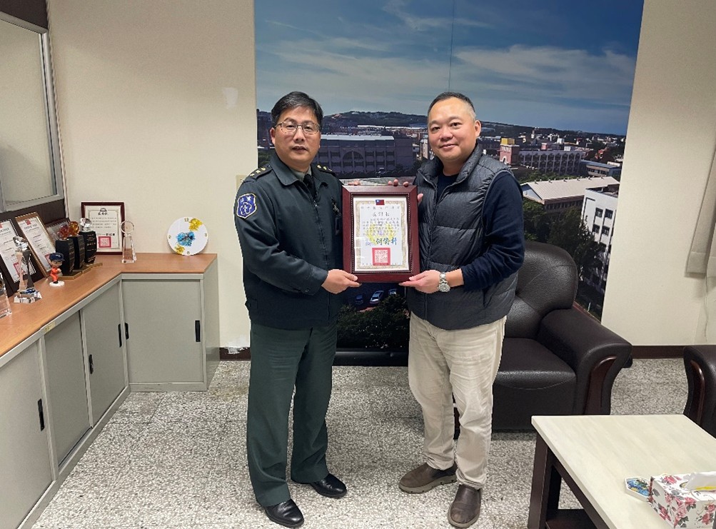 為感謝本校對表揚活動之全力支持,新竹後備指揮部何橋軒上校於115年1月28日蒞臨本校,親自致贈呂明峯校長「感謝狀」,表達誠摯謝意。呂校長表示,落實全民國防教育為本校重要施政重點之一,未來亦將持續支持相關活動,並致贈年節禮品慰勞新竹後備指揮部官兵辛勞,同時預祝新年快樂。