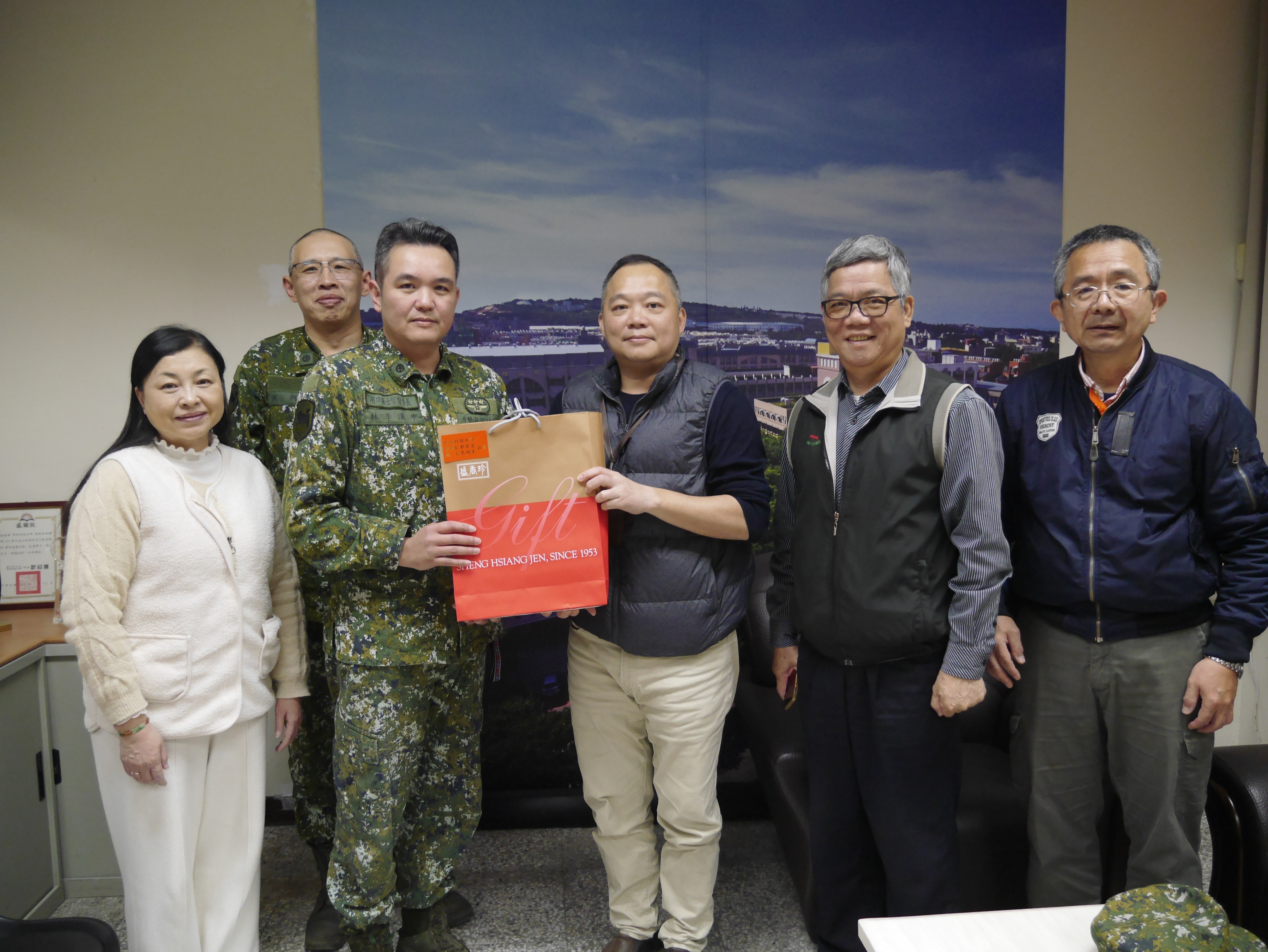 同時,白東岳處長代表學校全體師生致贈年節賀禮予林李漢中士官督導長,以慰勞所屬官兵辛勞,並祝賀新年快樂。