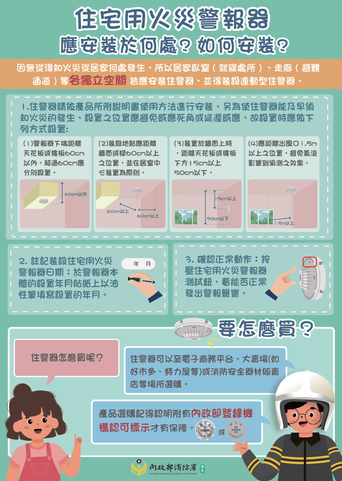 中華民國內政部消防署全球資訊網 > 預防災害 > 住宅用火災警報器 > 住警器Q&A