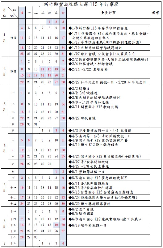 📝📒115年豐湖社區大學行事曆✒📝📒