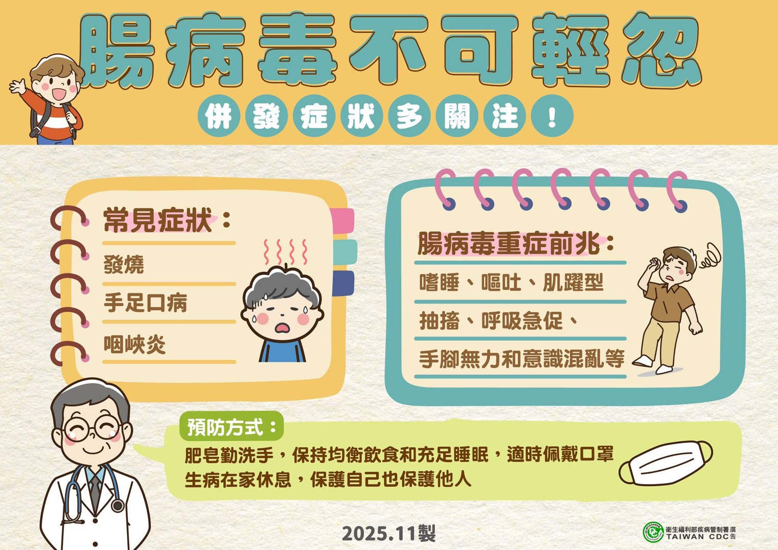 【資訊分享】腸病毒進入流行期,提醒所有家長與照顧者多一分留意、多一分安心守護🧡