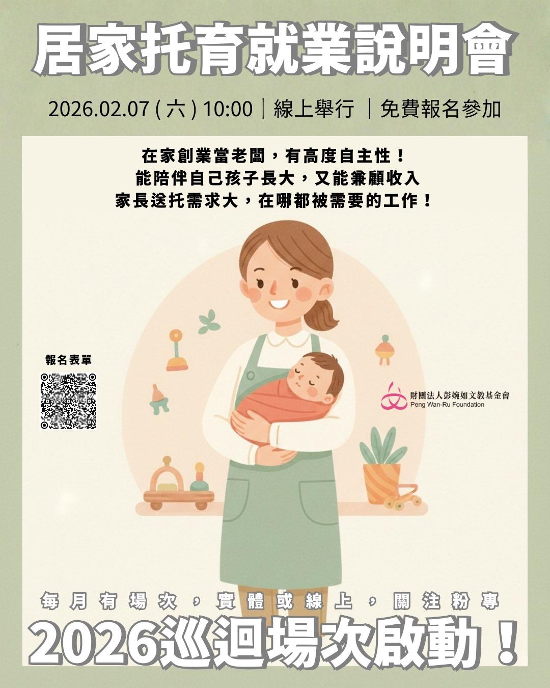 【資訊分享】彭婉如基金會-2026.02.07(六)居家托育人員線上就業說明會