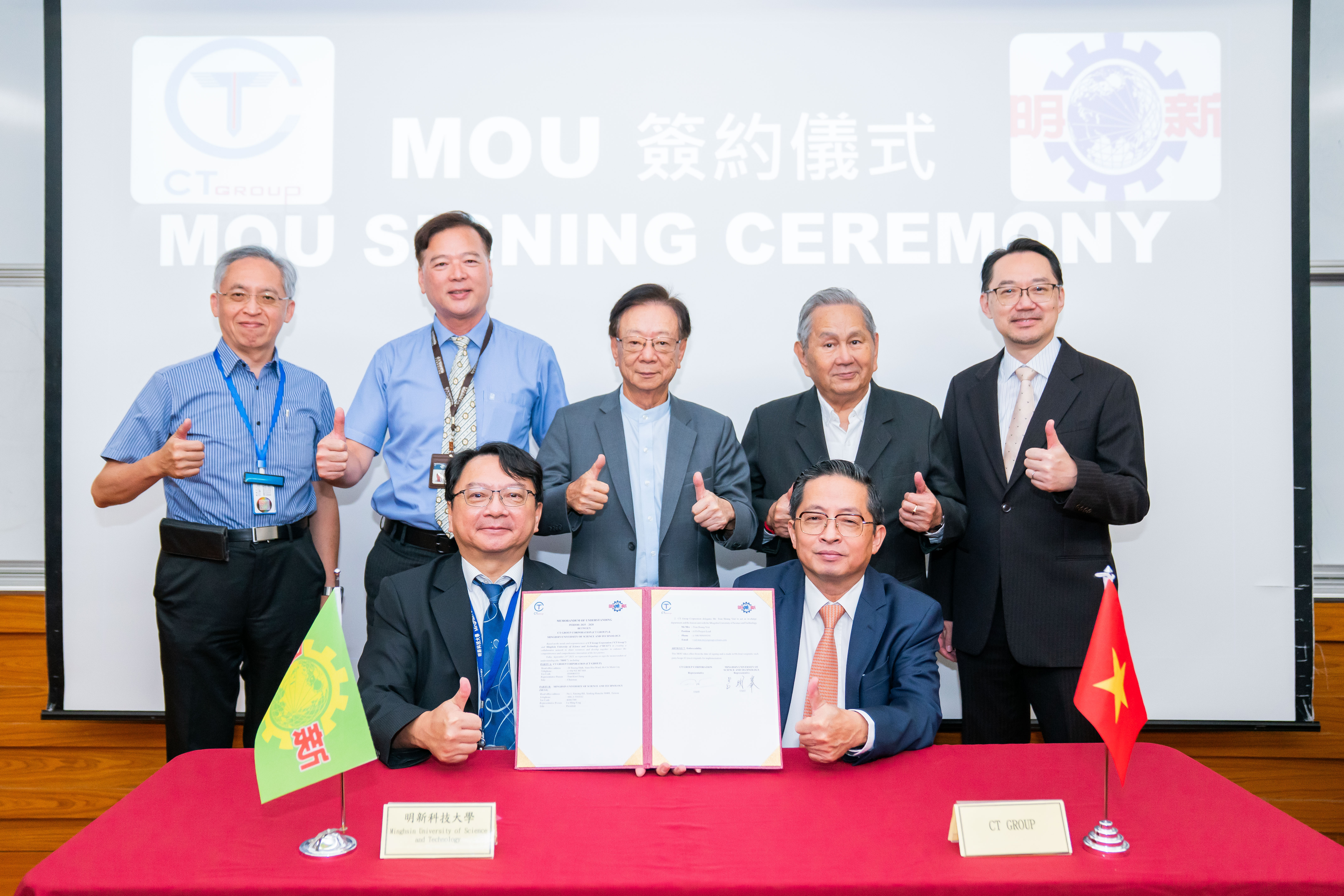 明新科技大學於 9 月 23 日歡迎越南企業 CT Group董事長Tran Kim Chung 與台灣互貴興業董事長暨明新科技大學校務顧問宣明智率團蒞校,並簽署合作意向書。CT Group 與明新科大同為互貴興業重要合作夥伴,此次三方攜手,展現強化國際產學鏈結、培育高階人才及推動半導體與高科技產業的決心。