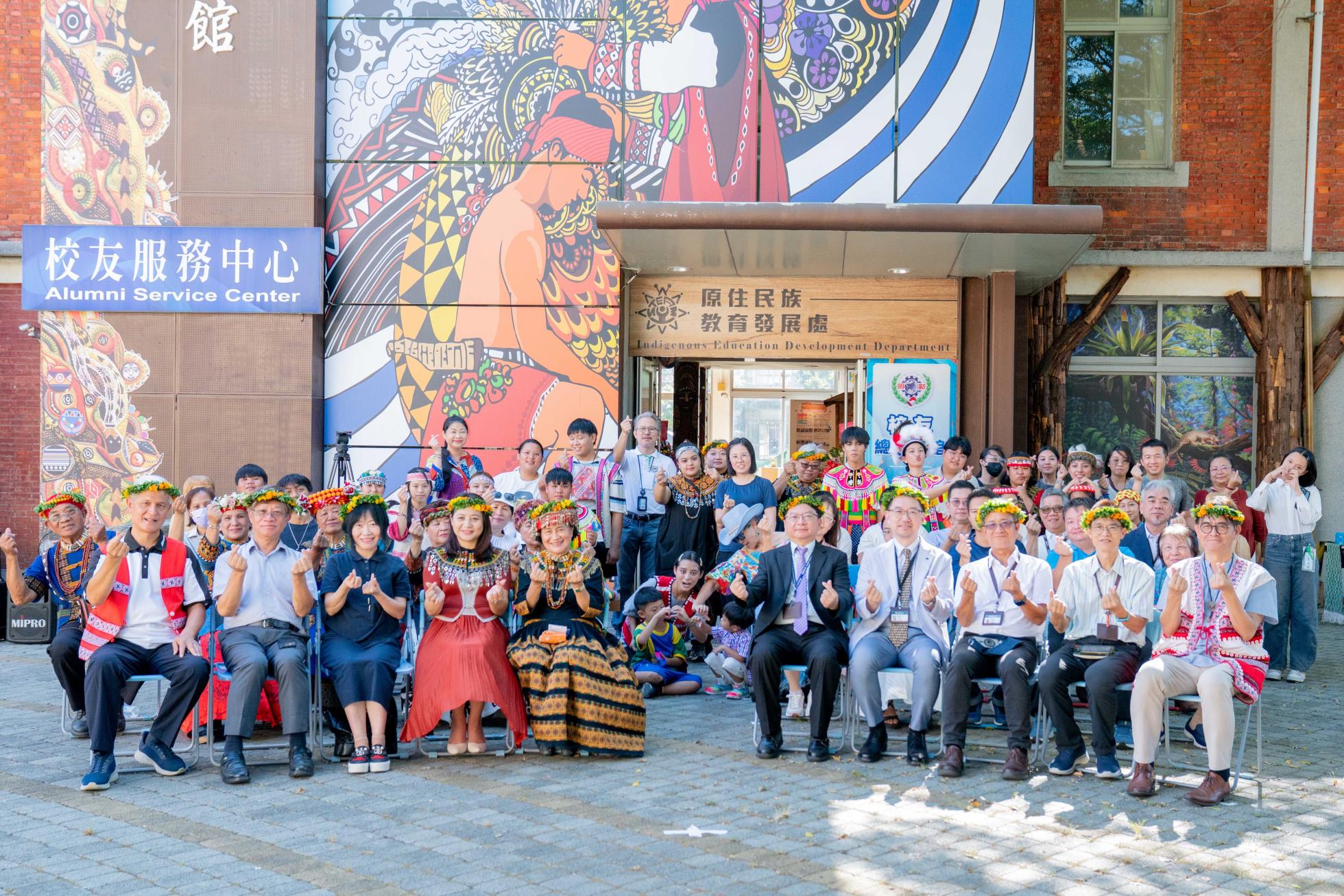 ▲校慶當天由原民處舉辦排灣族琉璃珠特展《嚮光!》,並邀請排灣族耆老吟唱祈福,為展覽揭開序幕。「蜻蜓雅築」施秀菊工藝師,作品以光與希望為題,展現女性創作力與文化傳承之美。