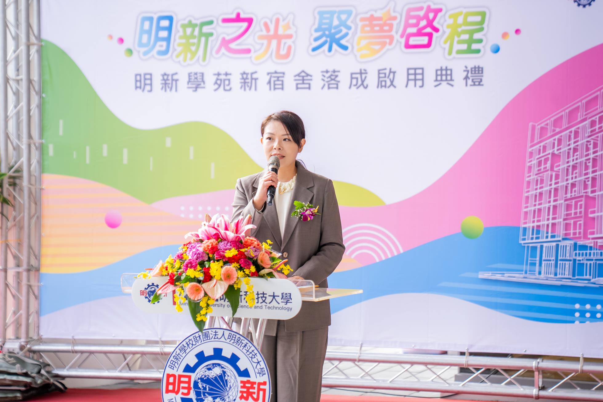 ▲明新科技大學董事長郝碧蓮於啟用典禮中致詞,感謝各界支持,期盼明新學苑成為學生安心生活與逐夢的重要場域。
