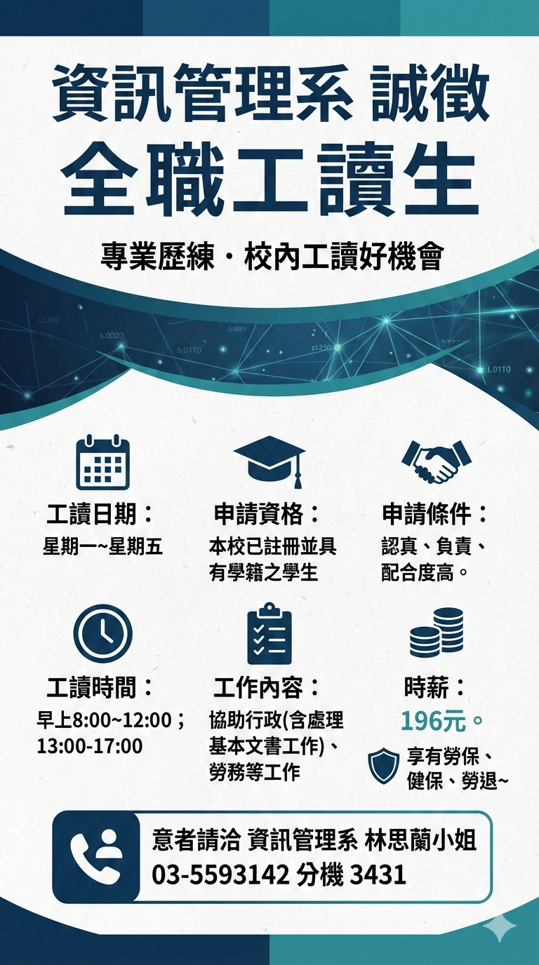 資訊管理系召募全職工讀生