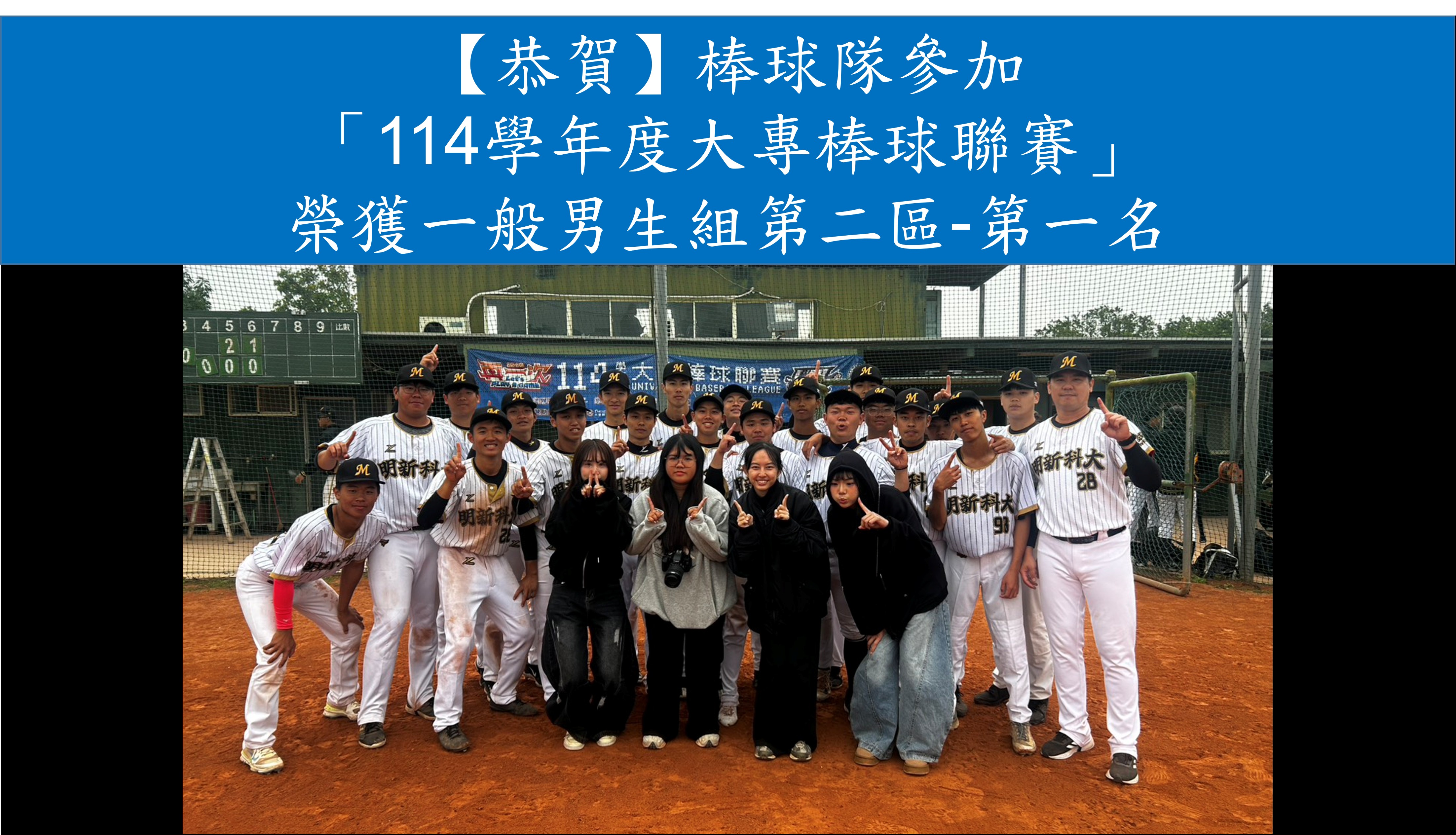 【恭賀】棒球隊參加「114學年度大專棒球聯賽」 榮獲一般男生組第二區分區第一名