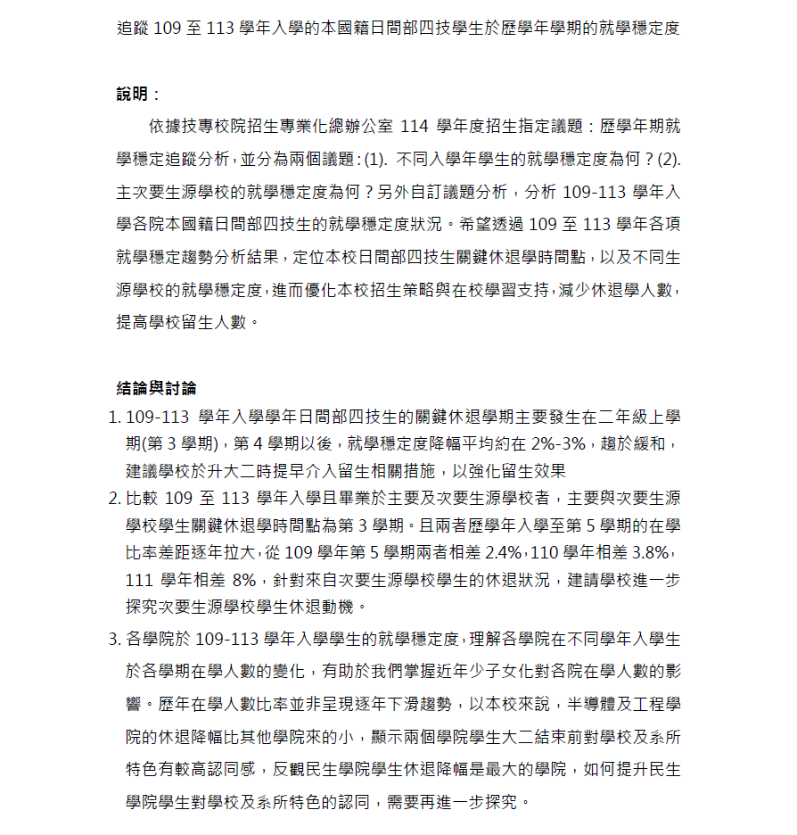 【114年度】114學年招生議題分析-109至113學年就學穩定度分析