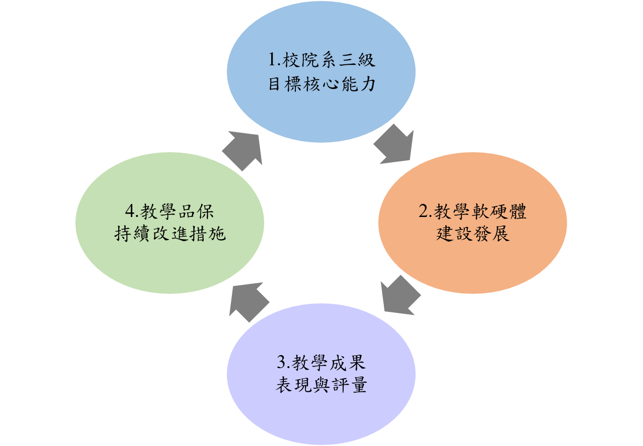 為確保學生受教品質,提升學生學習成效,本校教學品質保證包含校、院、系三級,政策擬訂由上向下推動,院級教學單位應依校教育目標訂定院教育目標,系級教學單位應依院教育目標訂定系教育目標、基本素養、核心能力及能力指標;教學品質管理作業之執行,由下而上逐級進行審核與管控。